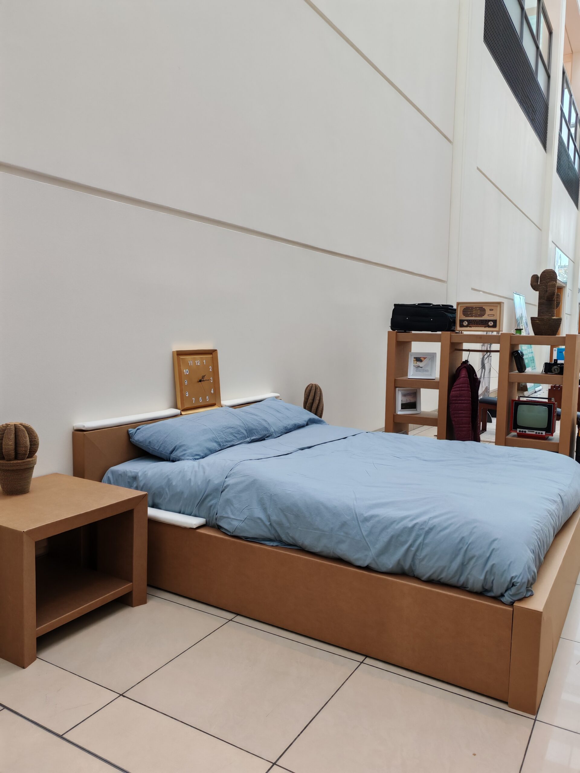 Inoltre, il cartone consente di realizzare strutture modulari e versatili. Questo permette di adattare lo spazio a diverse tipologie di eventi.