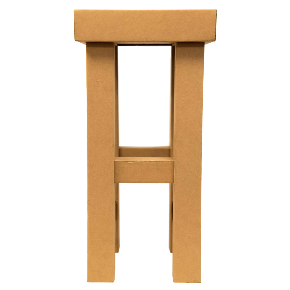 - Design elegante e versatile: il nostro sgabello in cartone offre un design moderno e raffinato che si adatta a qualsiasi ambiente. È perfetto per spazi abitativi, uffici, eventi o fiere, offrendo un tocco di stile eco-friendly ovunque.
