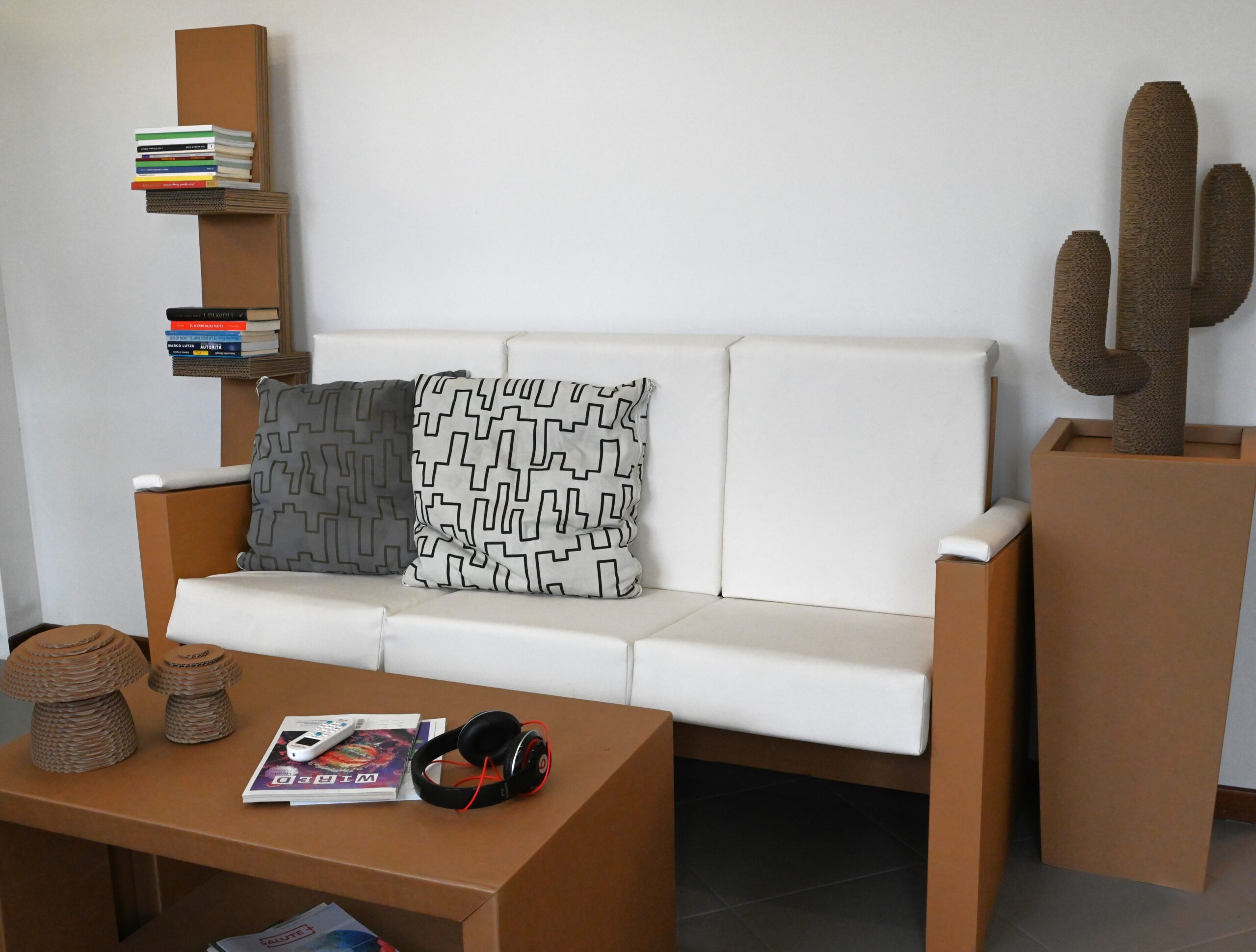 Dal punto di vista estetico, il divano in cartone riciclato si adatta perfettamente a qualsiasi ambiente moderno. Le linee pulite e il design minimalista lo rendono un elemento versatile, capace di integrarsi armoniosamente in salotti, uffici e spazi pubblici. Inoltre, il cartone può essere facilmente personalizzato con colori, texture e motivi, permettendo di creare un pezzo unico che riflette il tuo stile personale.